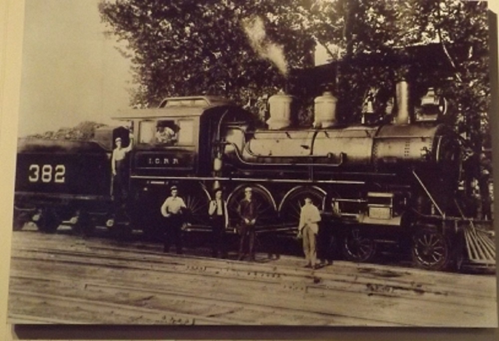 Photograph of a photograph of the Engine No. 382 the “Cannonball” and Casey Jones in the driver’s cab was taken at the Casey Jones and Railroad Museum in Jackson, Kentucky by Joanna Adams Sergent.