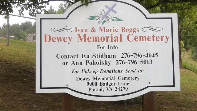One of the newer cemeteries in the area is the Dewey Memorial Cemetery in Pound, Virginia.